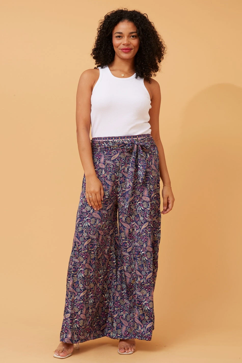These dreamy wide-leg pants are back in a border print. Pair with a tank top or a floral top for the ultimate boho co-ord.