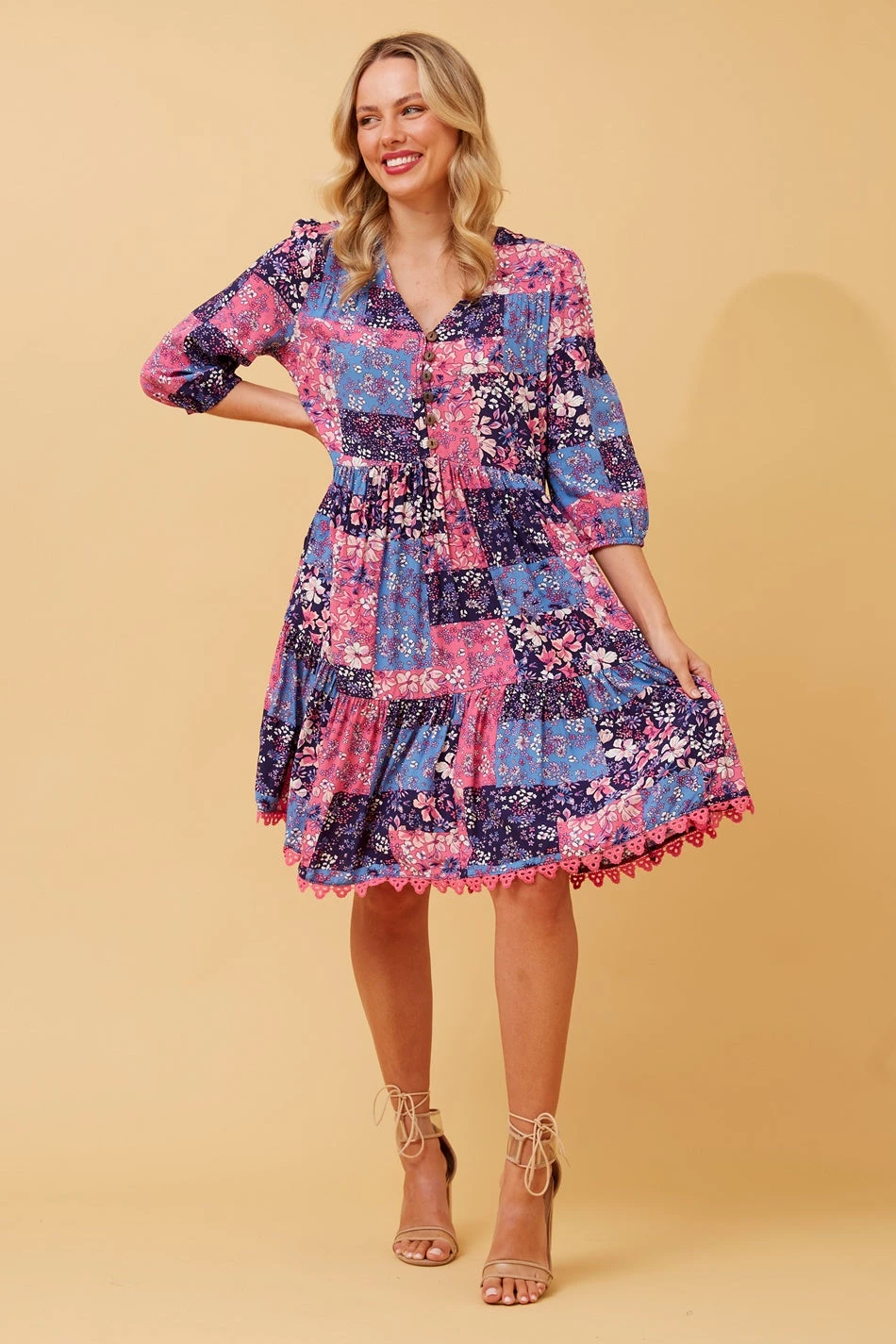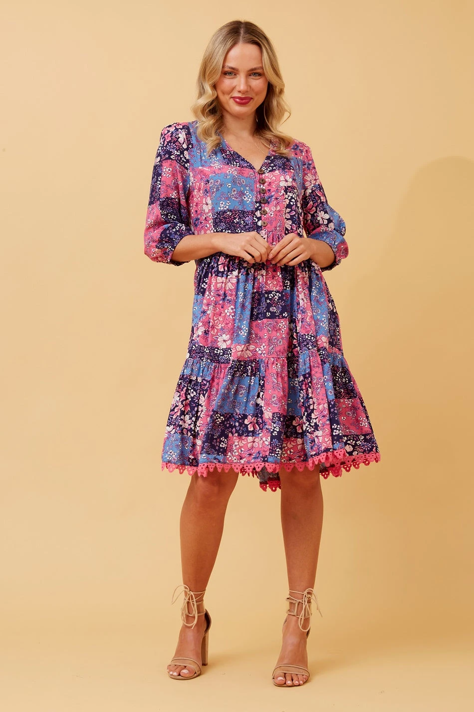 Our patchwork boho babydoll dress is sure to be a wardrobe favourite this season, keep it casual with sneakers and a cross body bag or make it glam with sandals or heels and statement accessories.