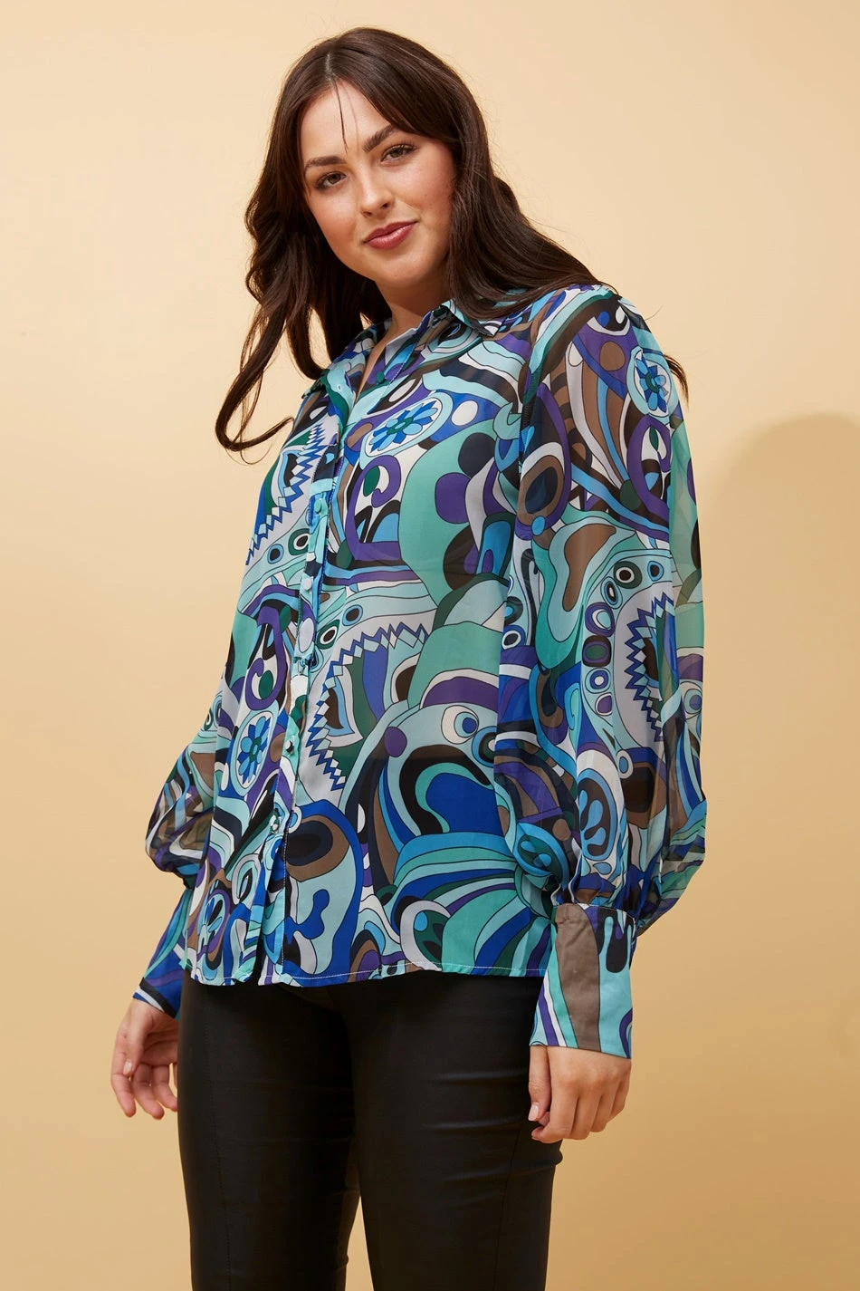 - Long balloon sleeves with button detail on cuffs
