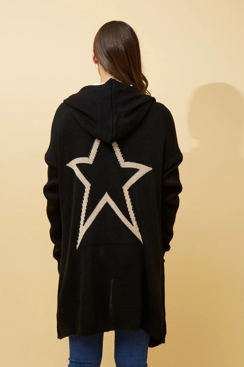 Our new Made in Italy knit cardigan features an open front and a sparkling star pattern on the back. Made for cosy winters, this cardigan can be paired with all your favourite casuals, from dresses to jeans!