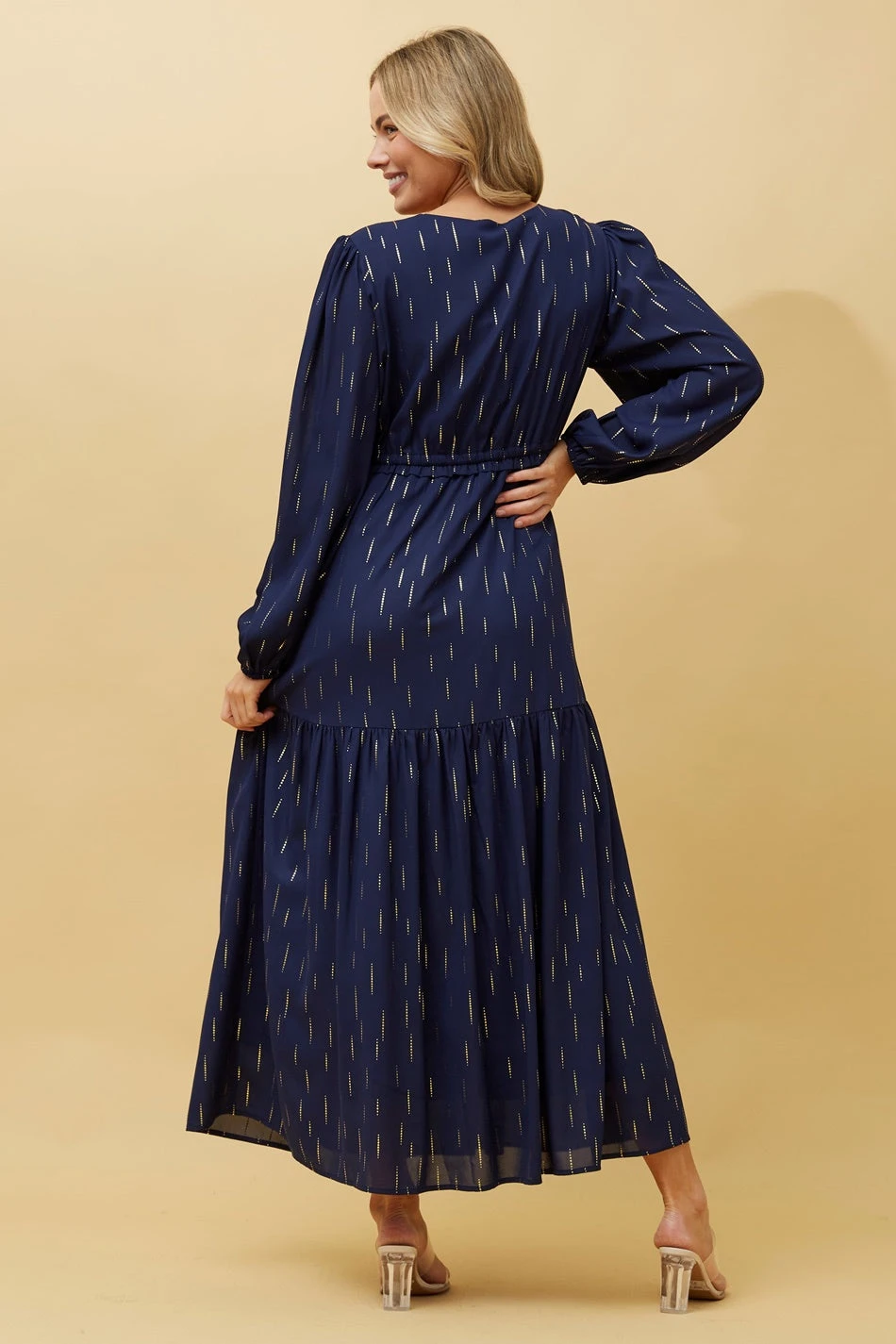 Shine like a star in our ditsy foil print maxi dress! Crafted in an all over foil print design, this flattering party dress is detailed with on-trend layers. Add a clutch bag and high heels to be ready to party in seconds!