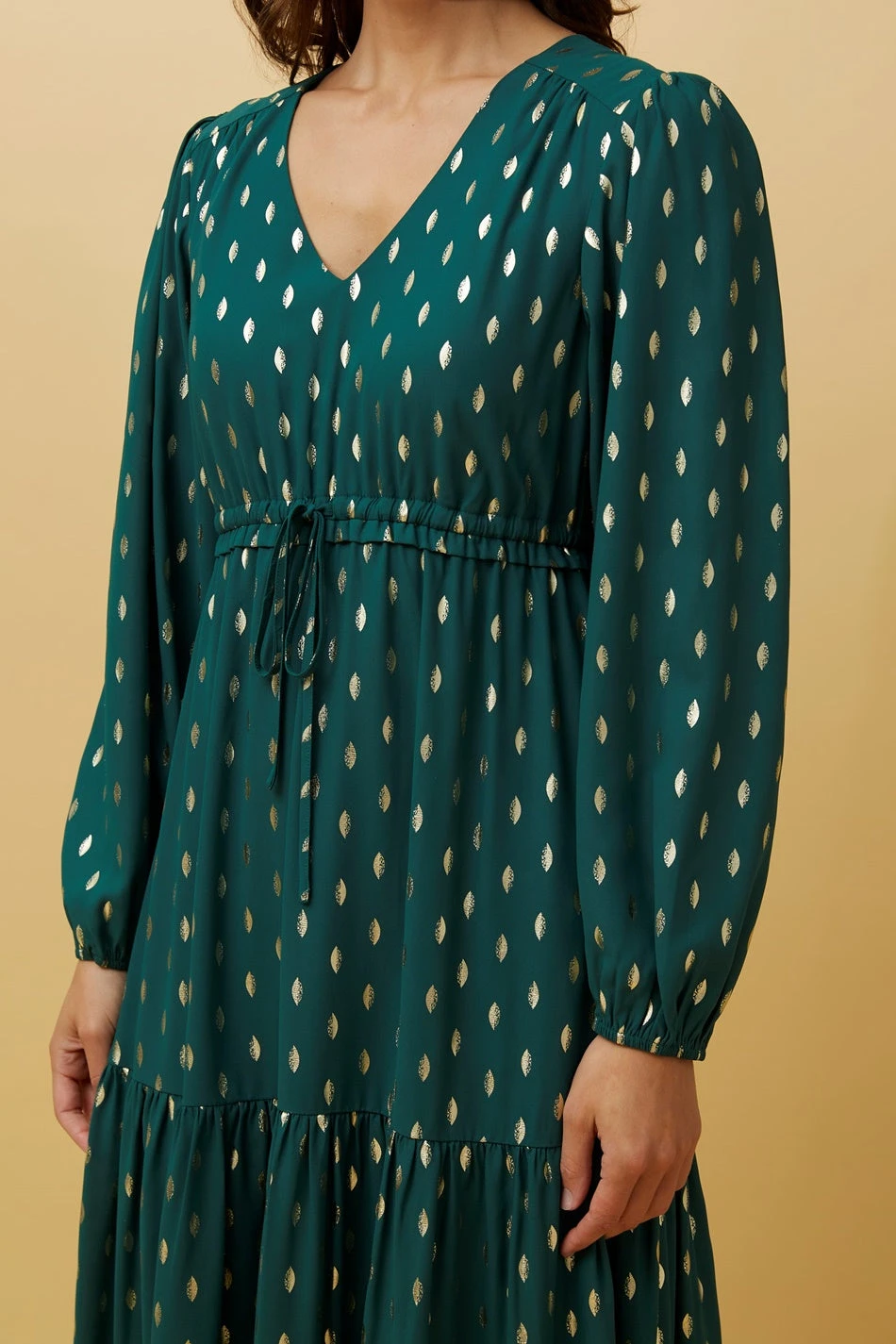 - Cinched in frill detail waist with self waist ties