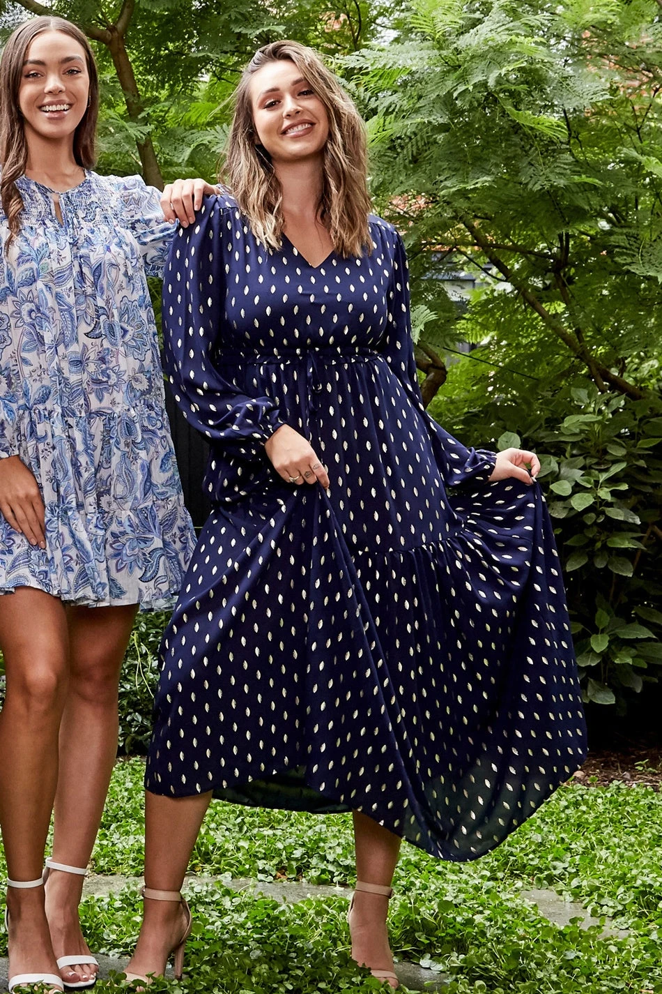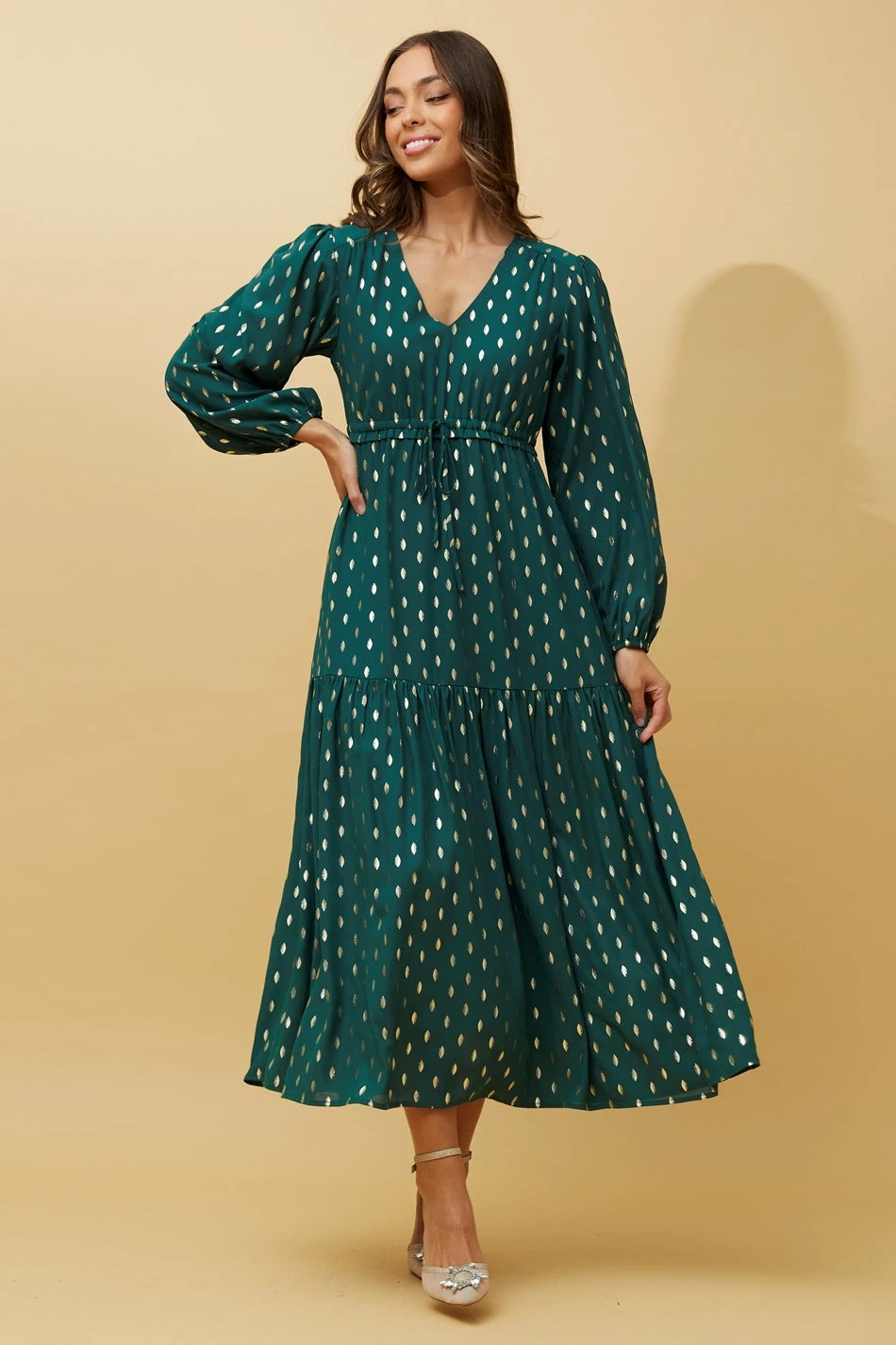 Shine like a star in our ditsy foil print maxi dress! Crafted in an all over foil print design, this flattering party dress is detailed with on-trend layers. Add a clutch bag and high heels to be ready to party in seconds!