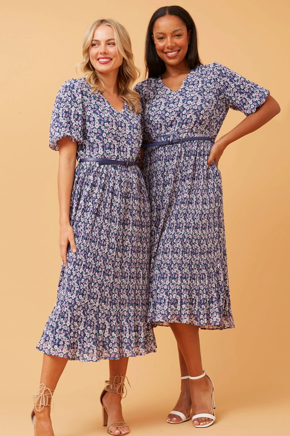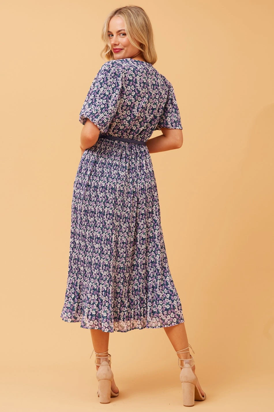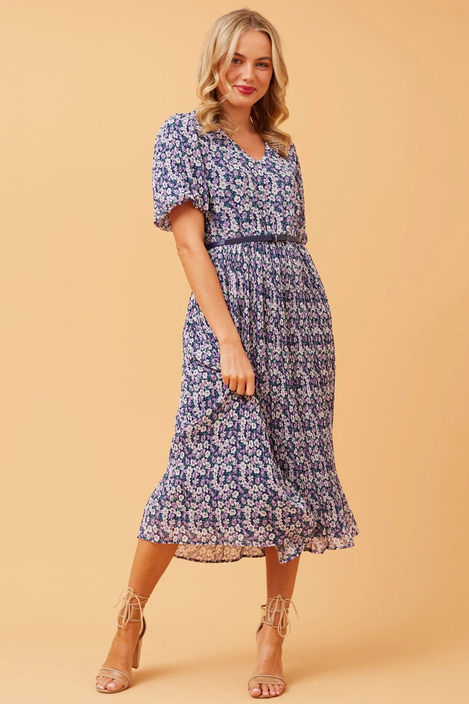Step out in the seasons favourite style in this perfect floral pleated midi dress. Perfect for your next sunny day event with the addition of sandals or dress it up with a heel for a night look.