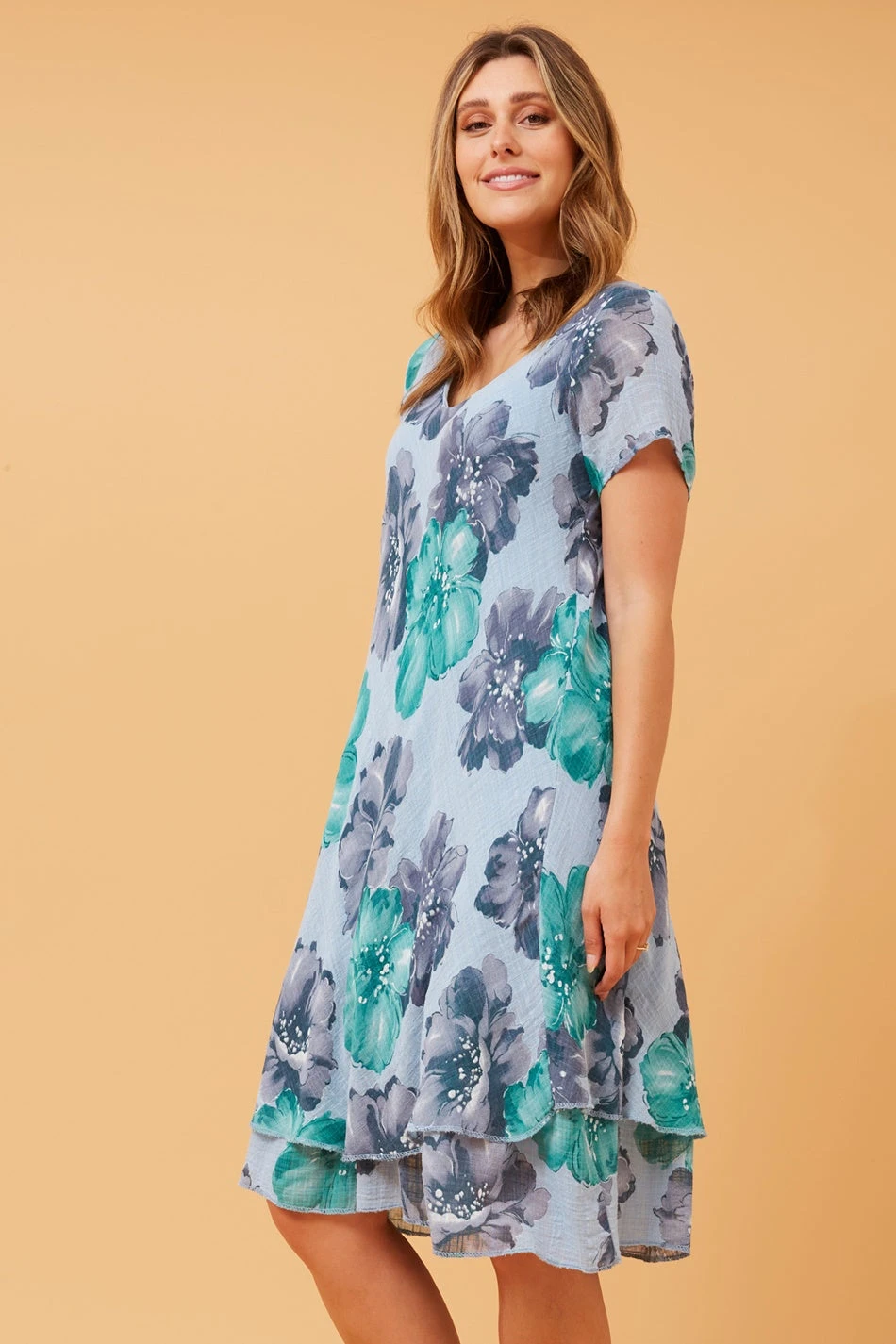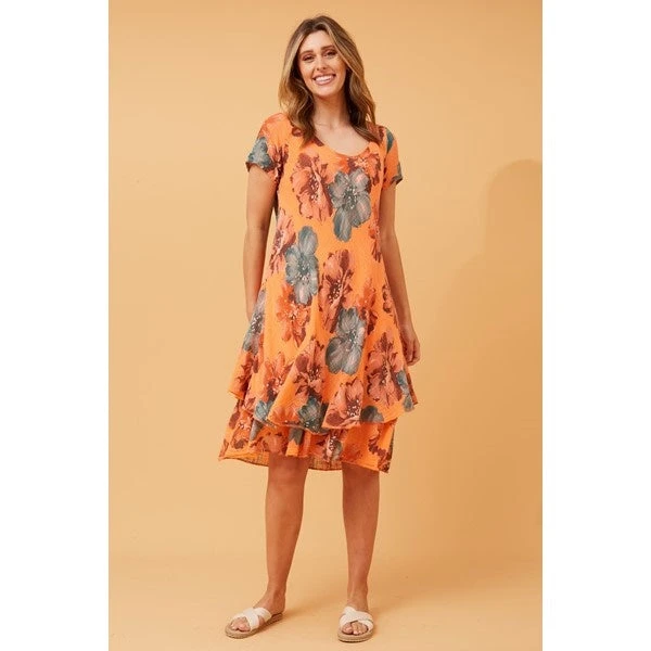 Indulge in this Double Layer Floral Dress, a perfect fusion of comfort and feminine charm. Crafted from soft cotton, this dress offers a breathable and lightweight feel, making it an ideal choice for casual occasions.Â