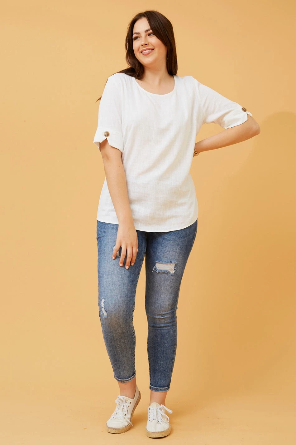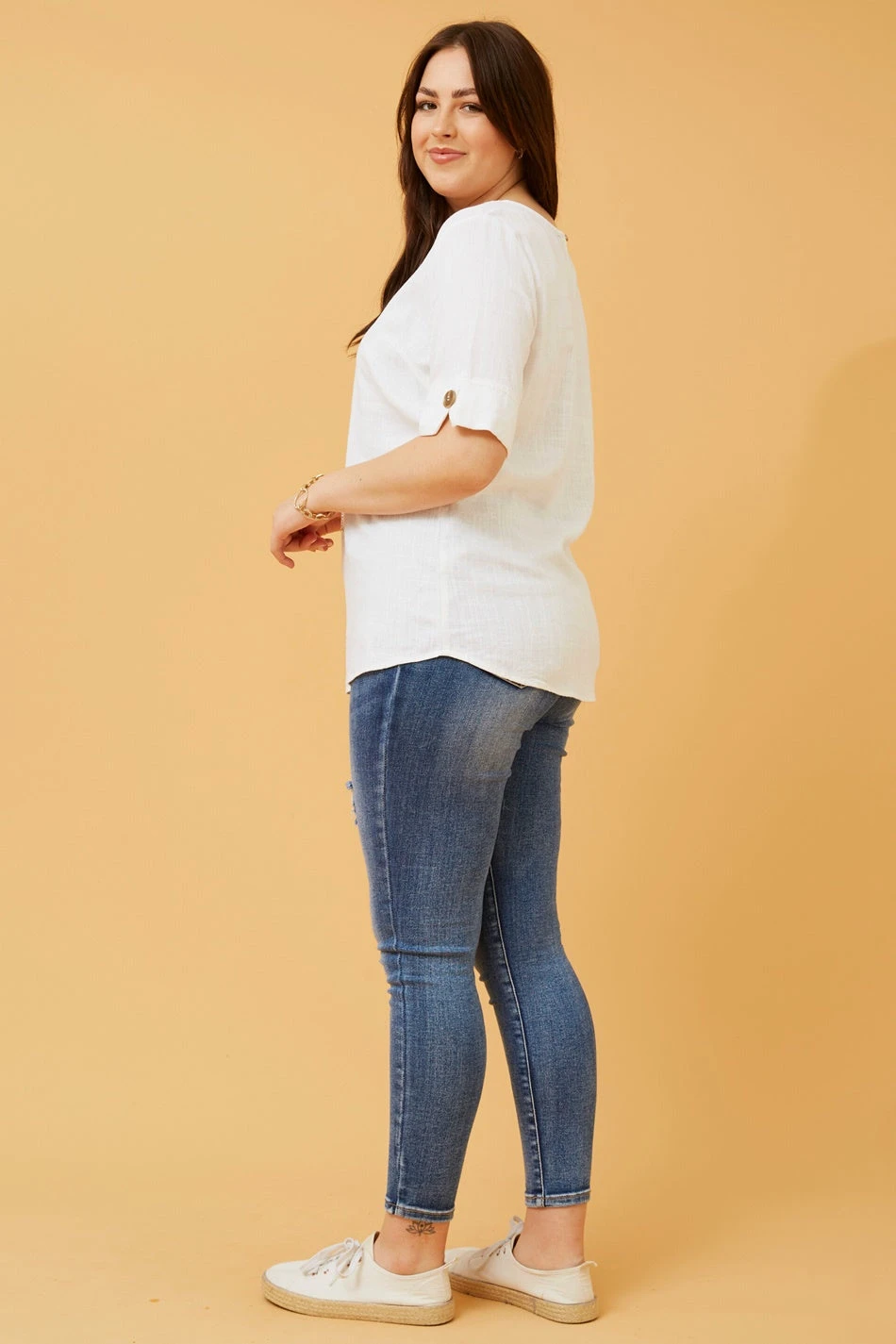 This button detail top creates a feminine vibe suiting all body types and adds edge to your style. Team it with your everyday pants and heels for a chic day look!