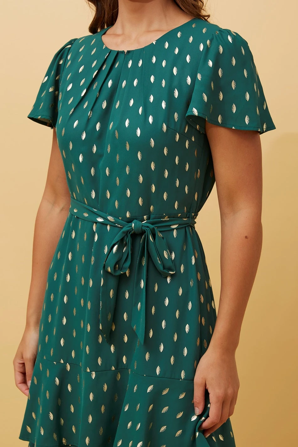 - Short flounce sleeves