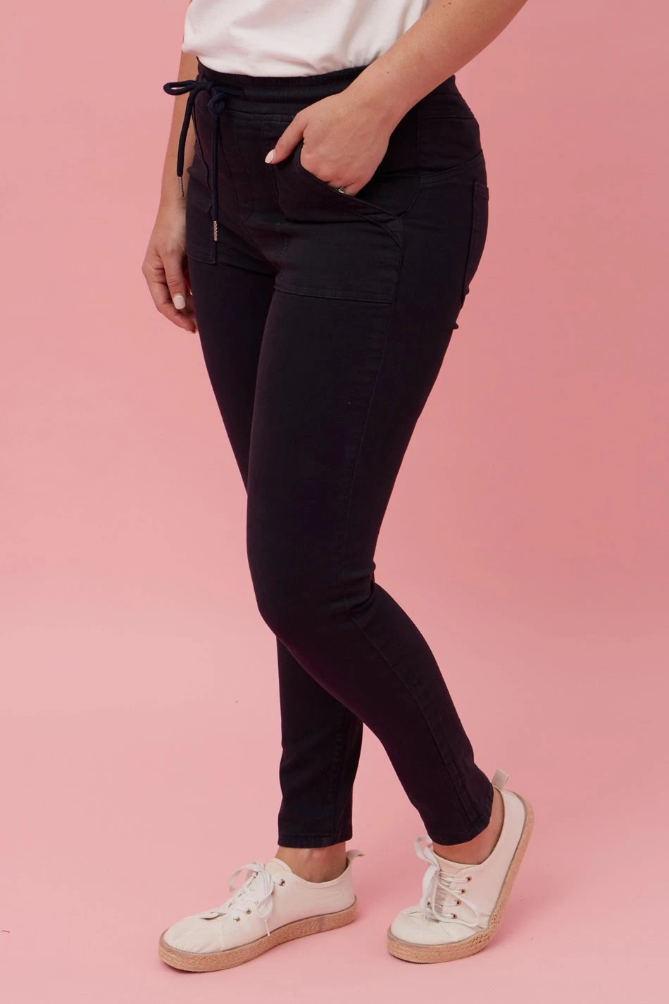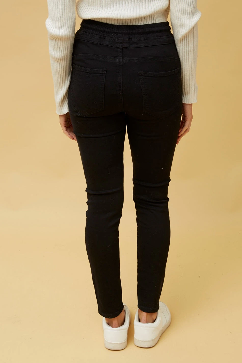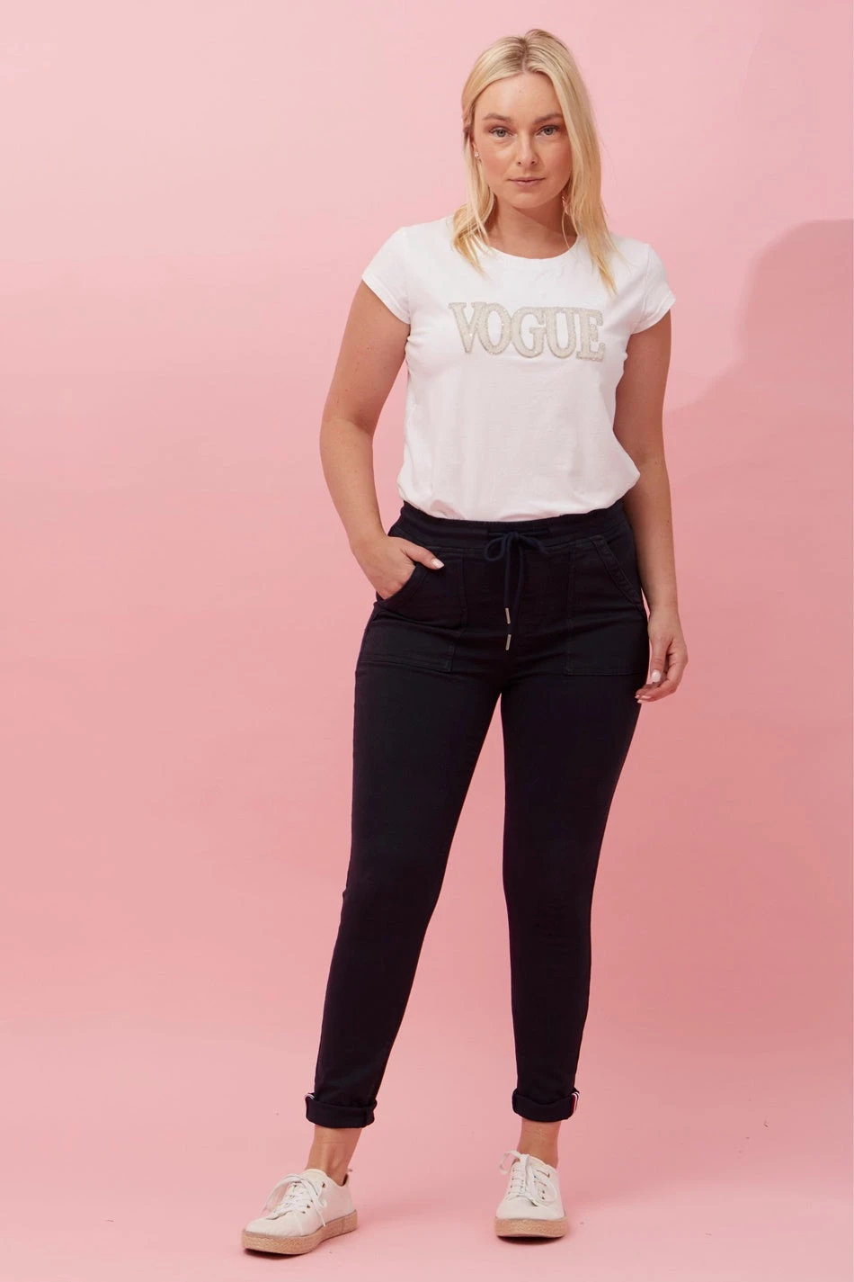 These solid denim joggers are the kind of pants you will be living in all year round. Blending the casual-chic style of jeans with the easy comfort of joggers. Perfect for pairing with sneakers and a simple tee for that casual yet chic look.