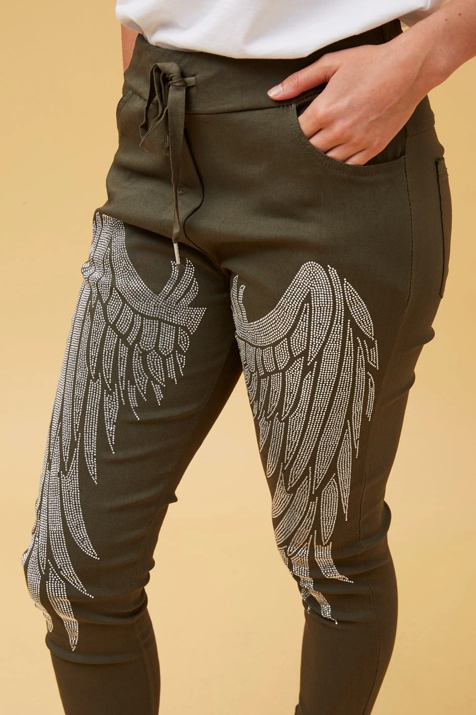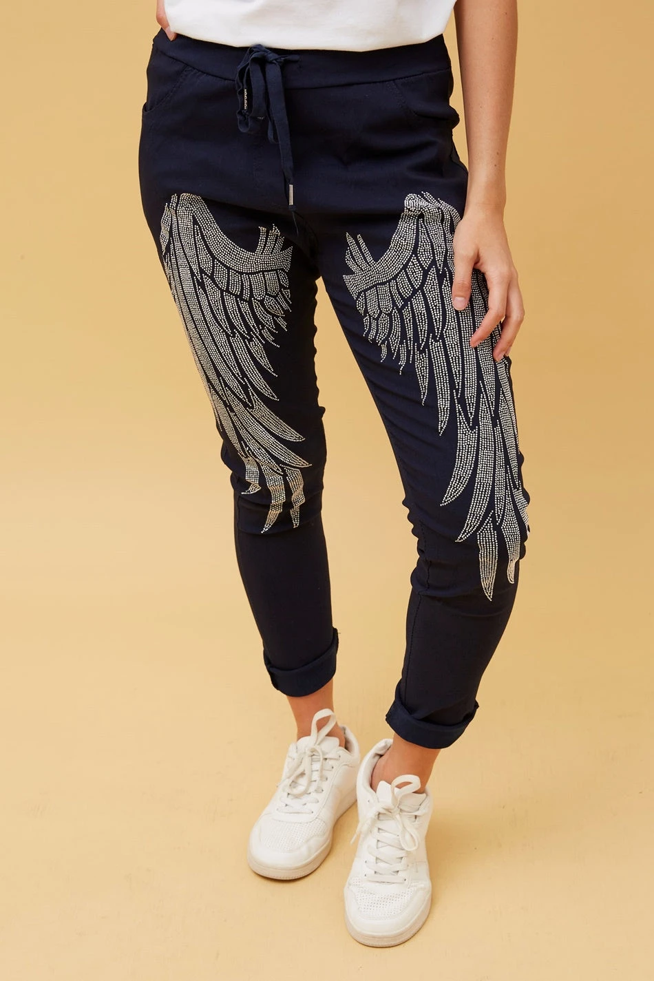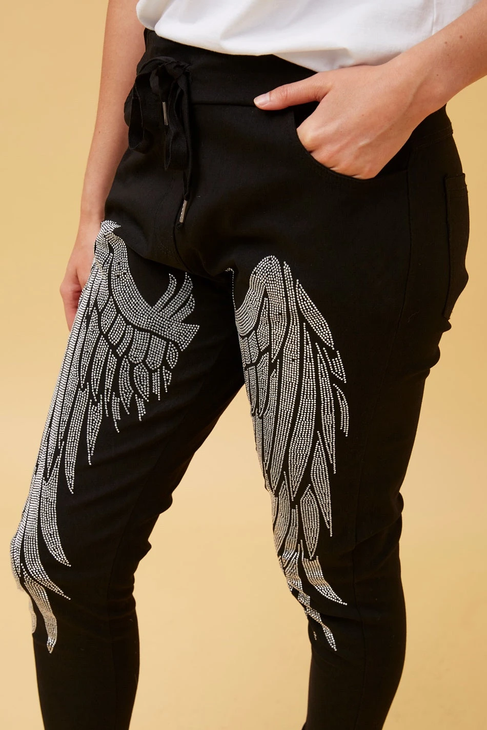Let your casual look go more comfy and stylish with these Janja Studded Wings Jogger Pants. Featuring a medium rise waist and adjustable waist tie, these joggers can be worn with a t-shirt and runners for an effortless everyday look!