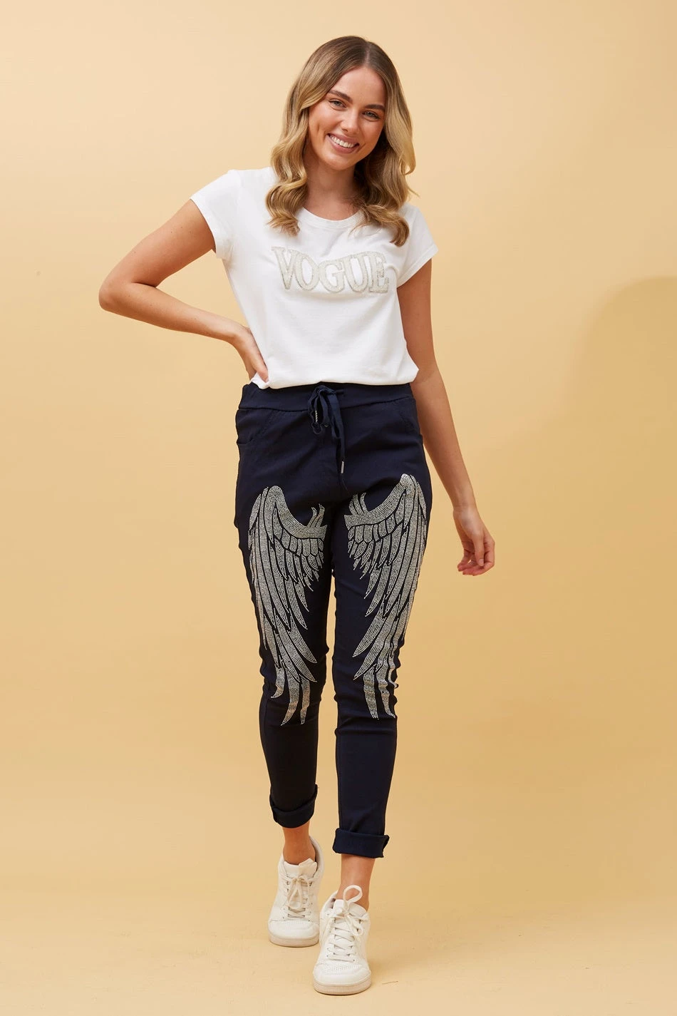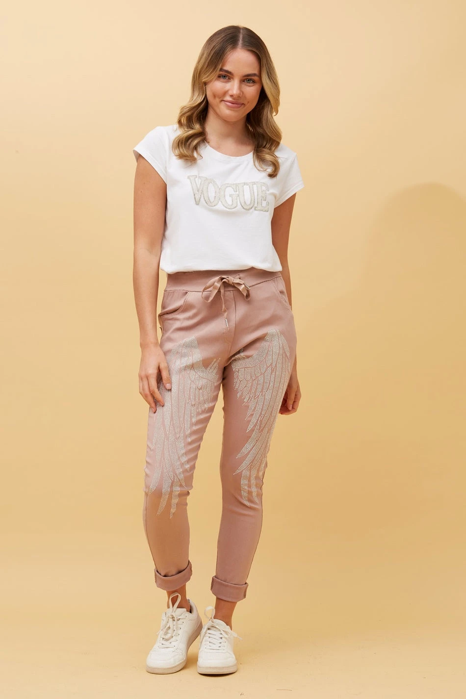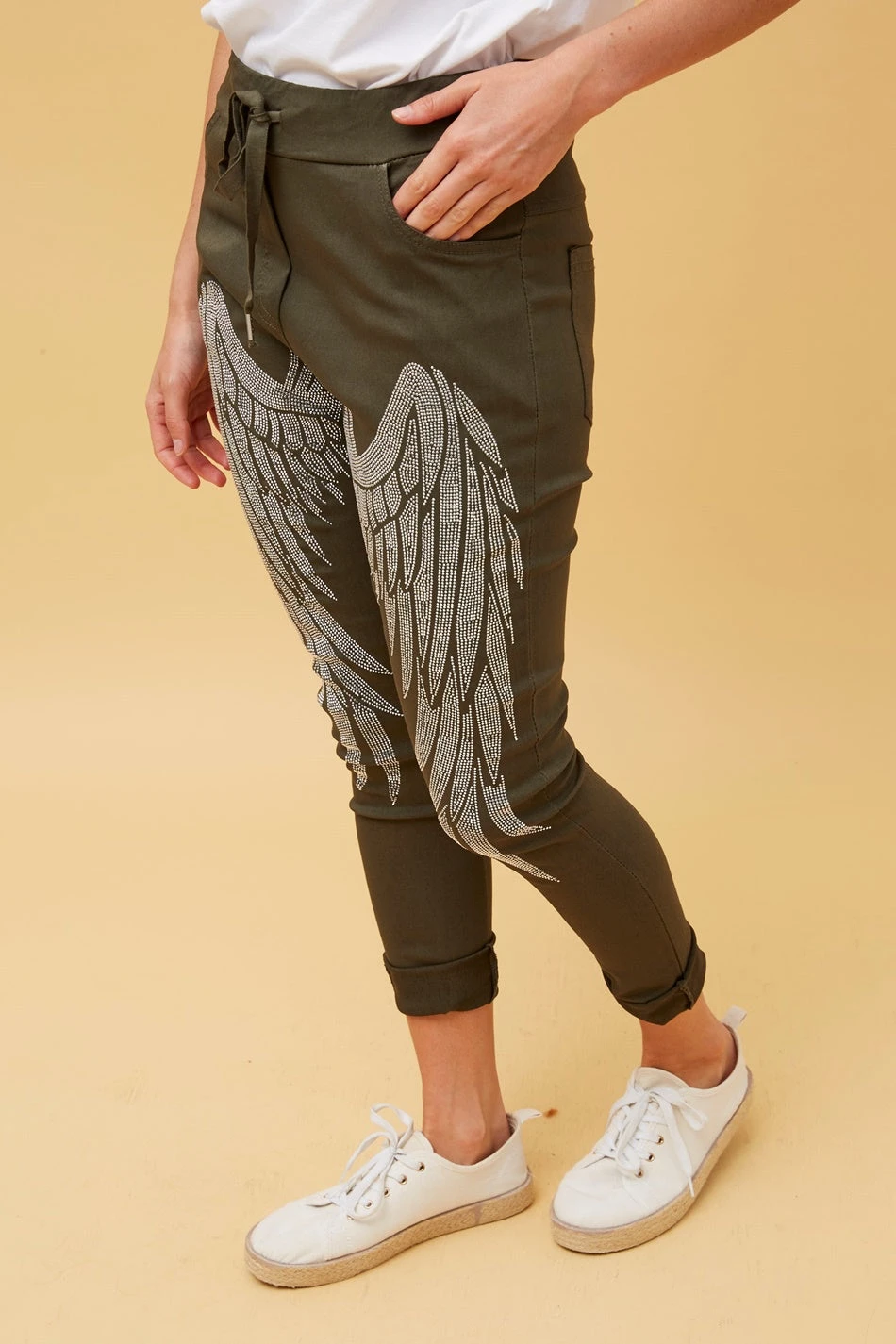 Let your casual look go more comfy and stylish with these Janja Studded Wings Jogger Pants. Featuring a medium rise waist and adjustable waist tie, these joggers can be worn with a t-shirt and runners for an effortless everyday look!
