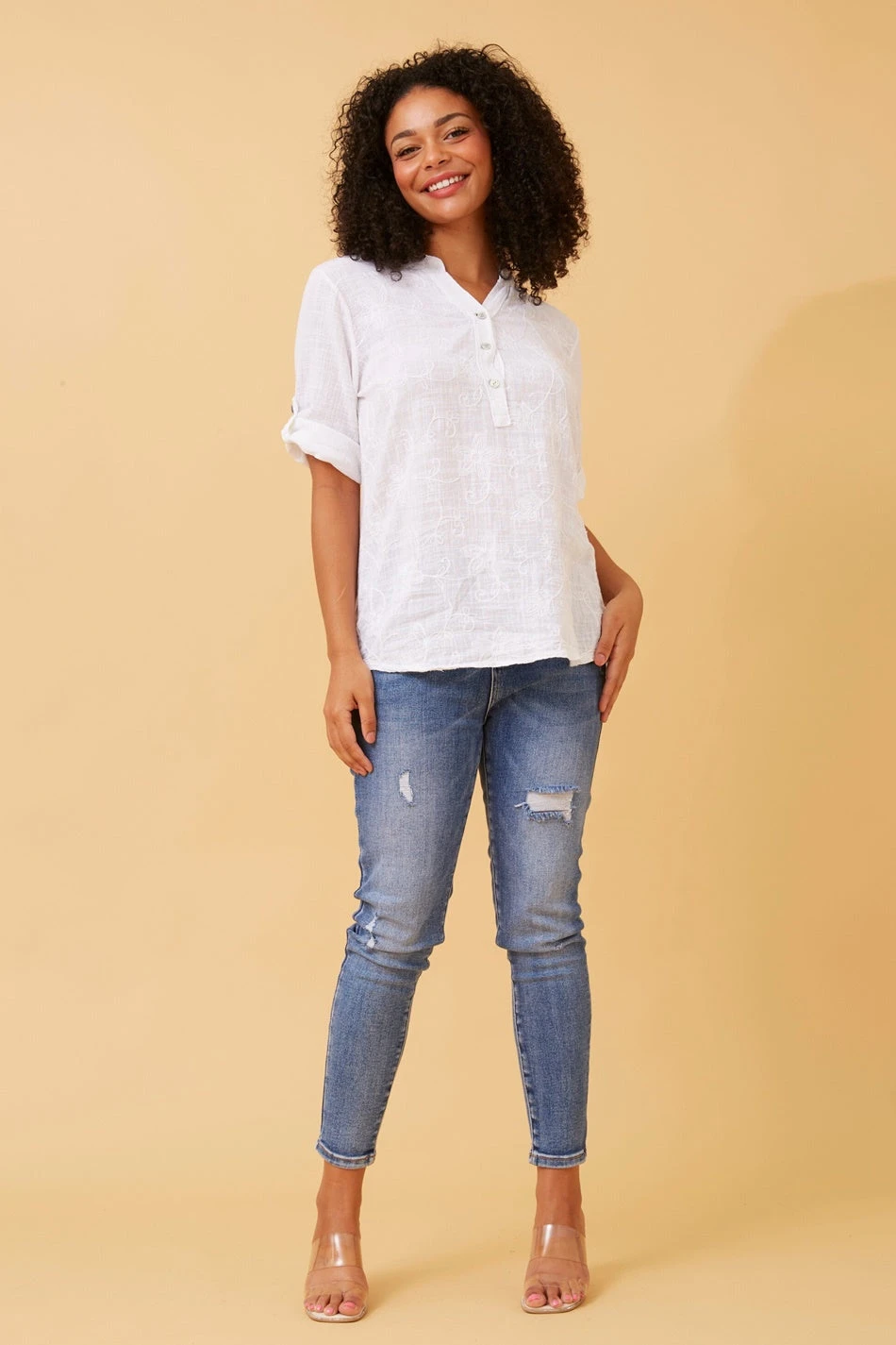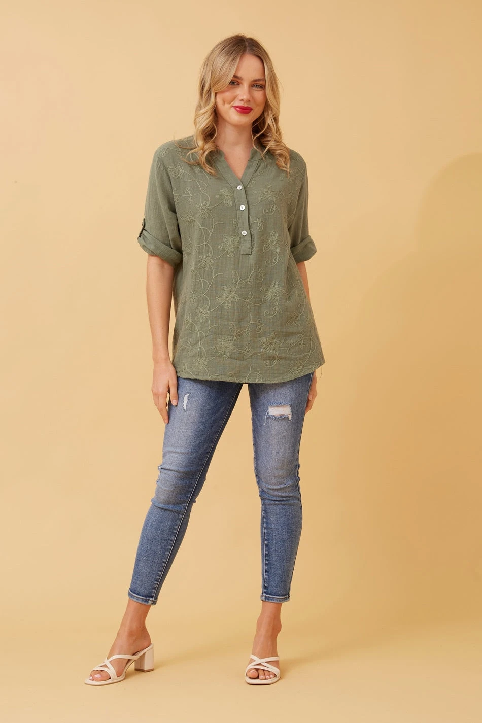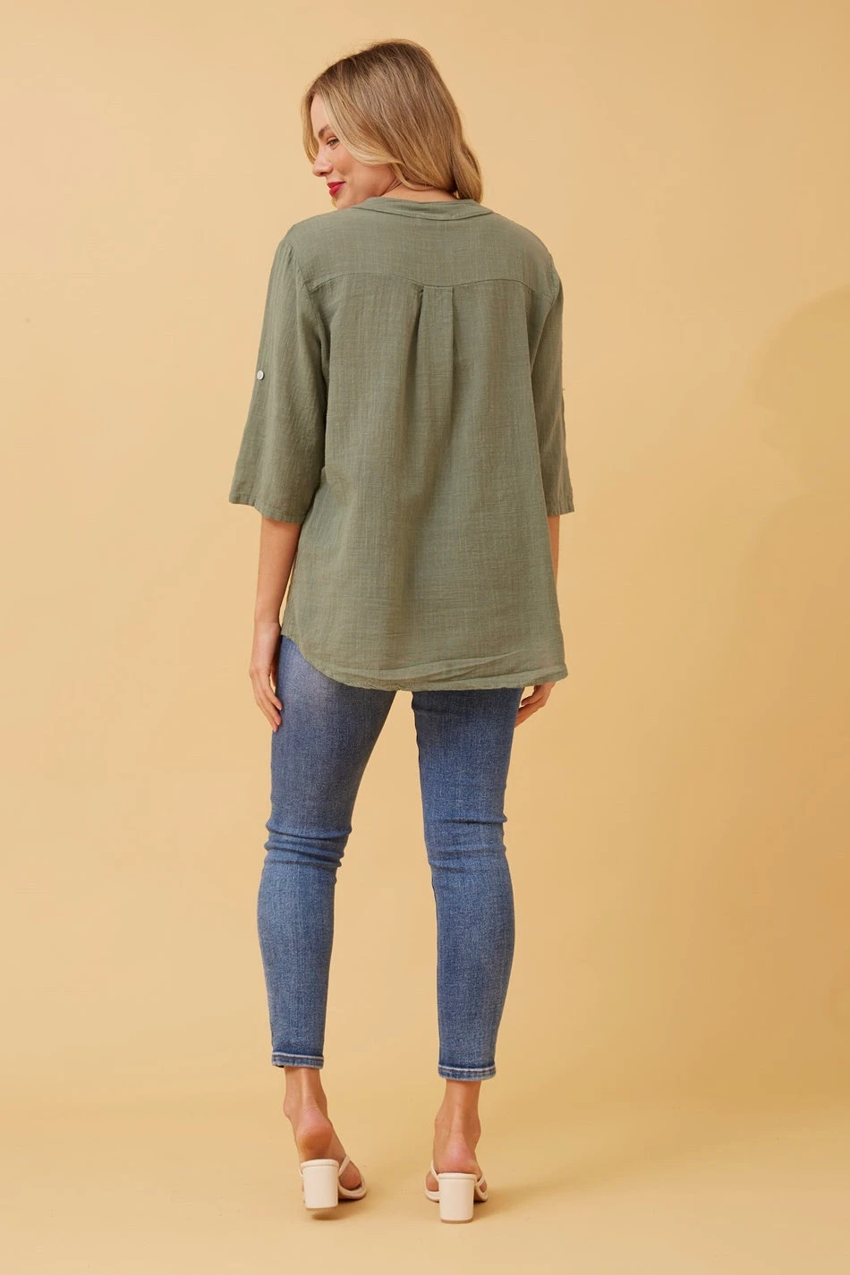 - 3/4th roll up sleeves with button detail