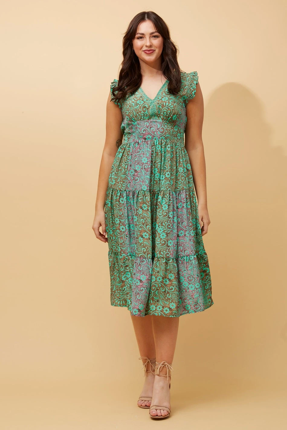 Add this easy to wear midi dress to your wardrobe for effortless styling. The delicate printed floral design gives you an effortless feminine style.
