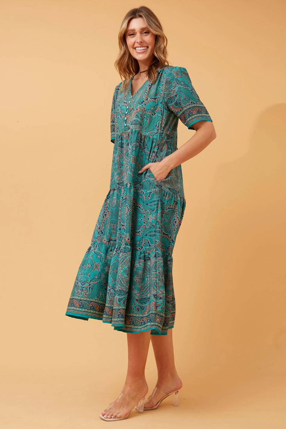 We’ve been in love with paisleys and border prints all year round at Femme HQ. Pair this dress with high statement heels for a formal look or replace them with white sneakers for a casual alternative.