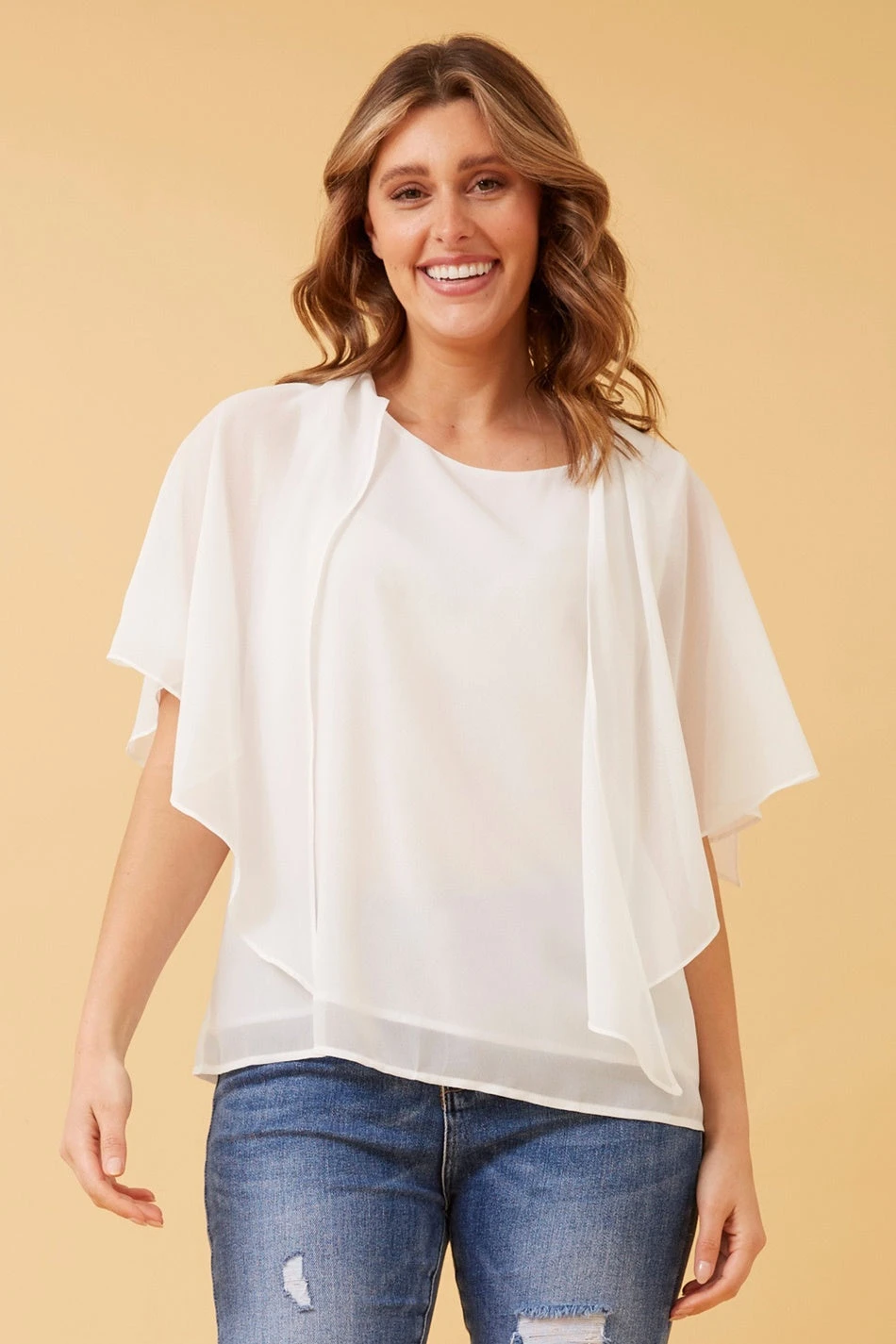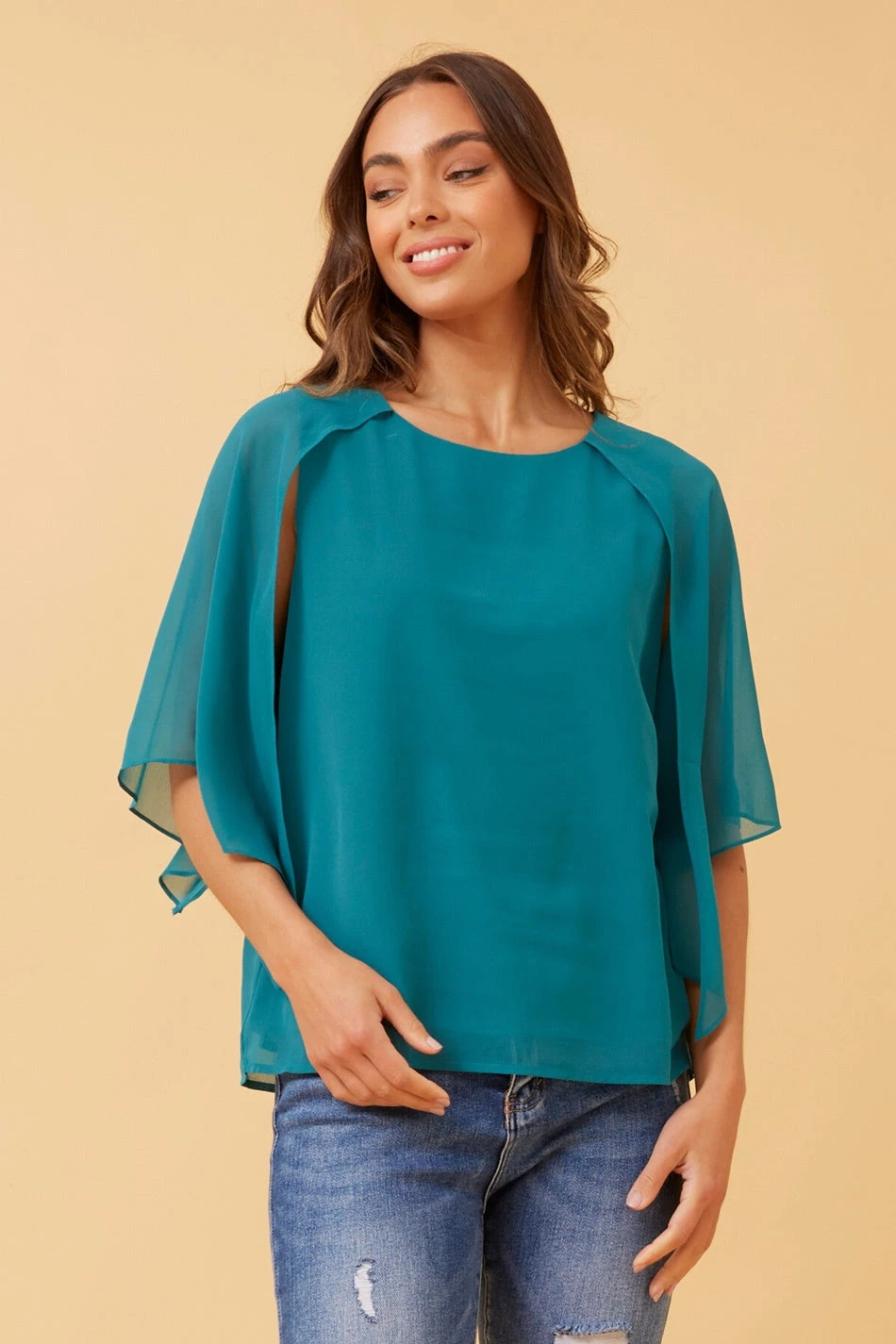 - 3/th butterfly split sheer sleeves