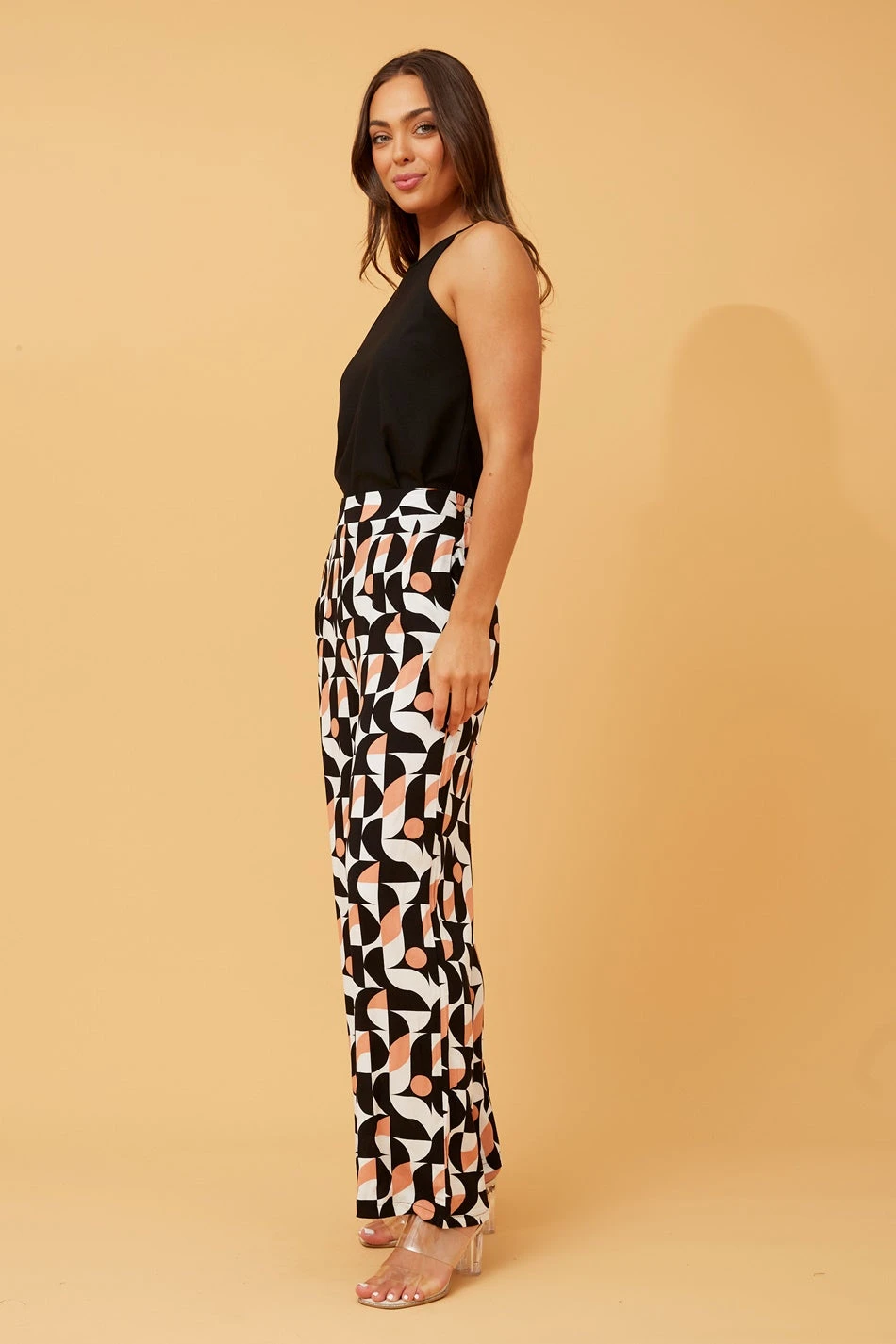 These wide leg geo print pants are a must have piece for summer styling. Easy to style with a singlet or a knotted tee. Pair with kicks or sandals for an effortless and cool summer look!