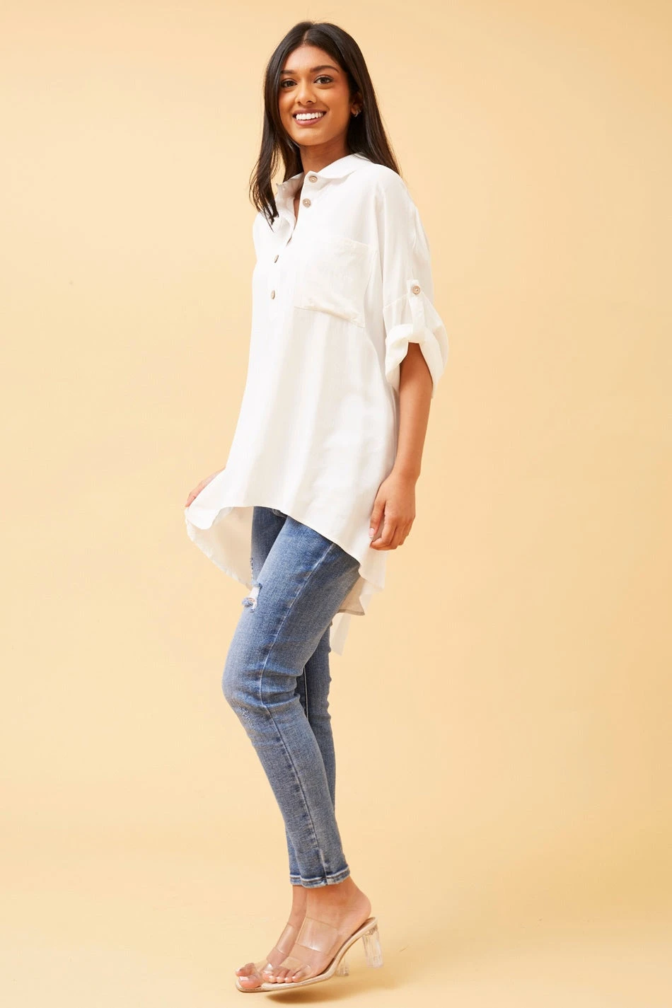 Feel absolutely beautiful in this oversized solid shirt this season! Style with jeans, shorts or skirts for a stylish summer look!