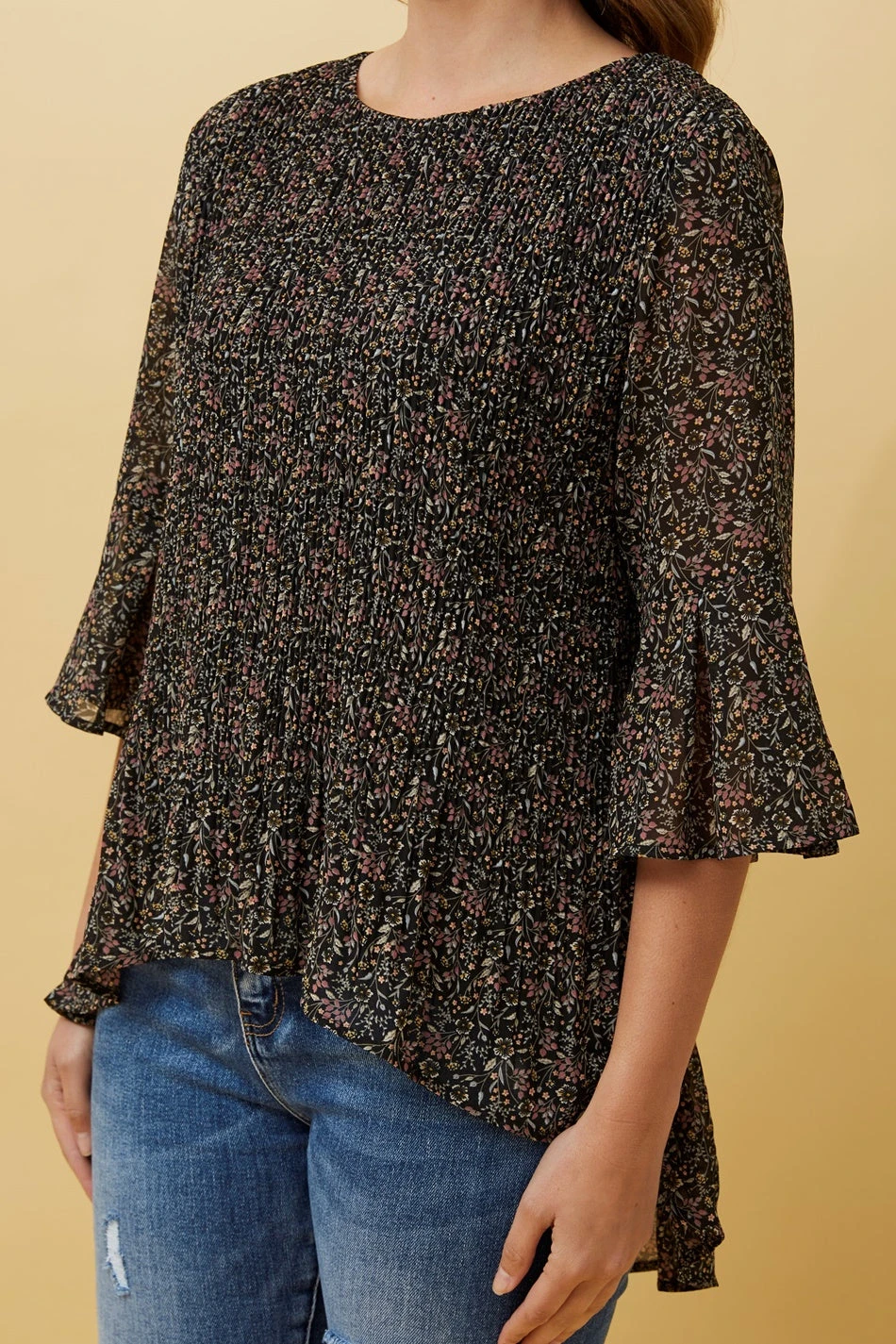 - 3/4th sleeves with tiered wide cuffs