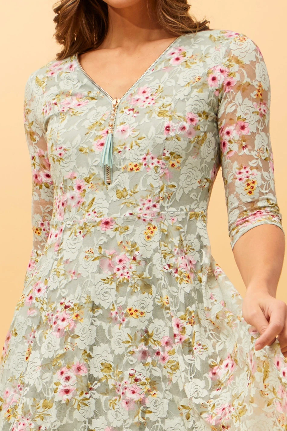 - 3/4th sheer sleeves