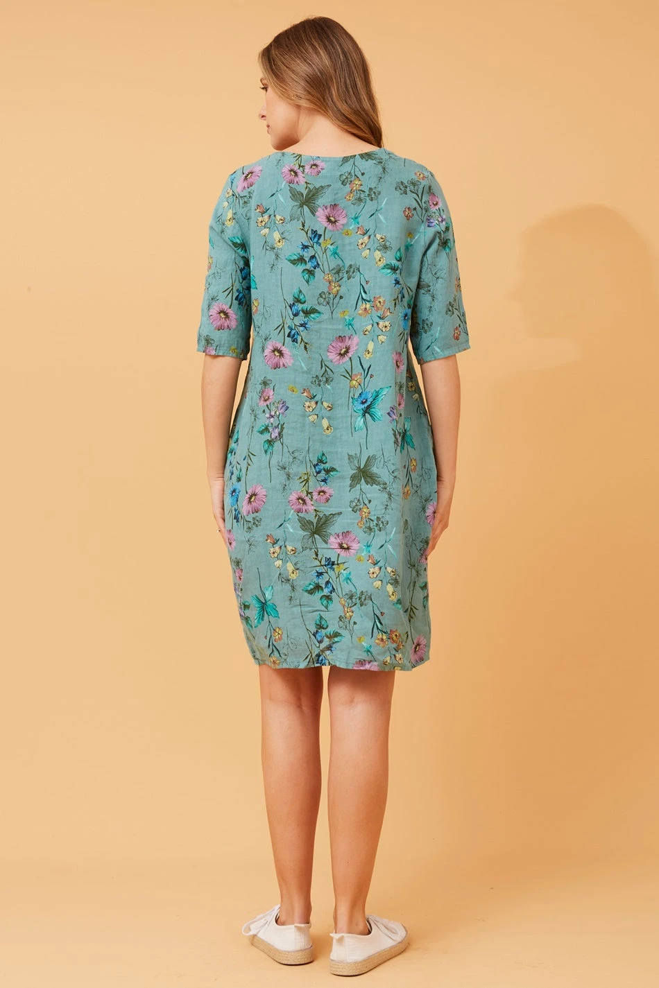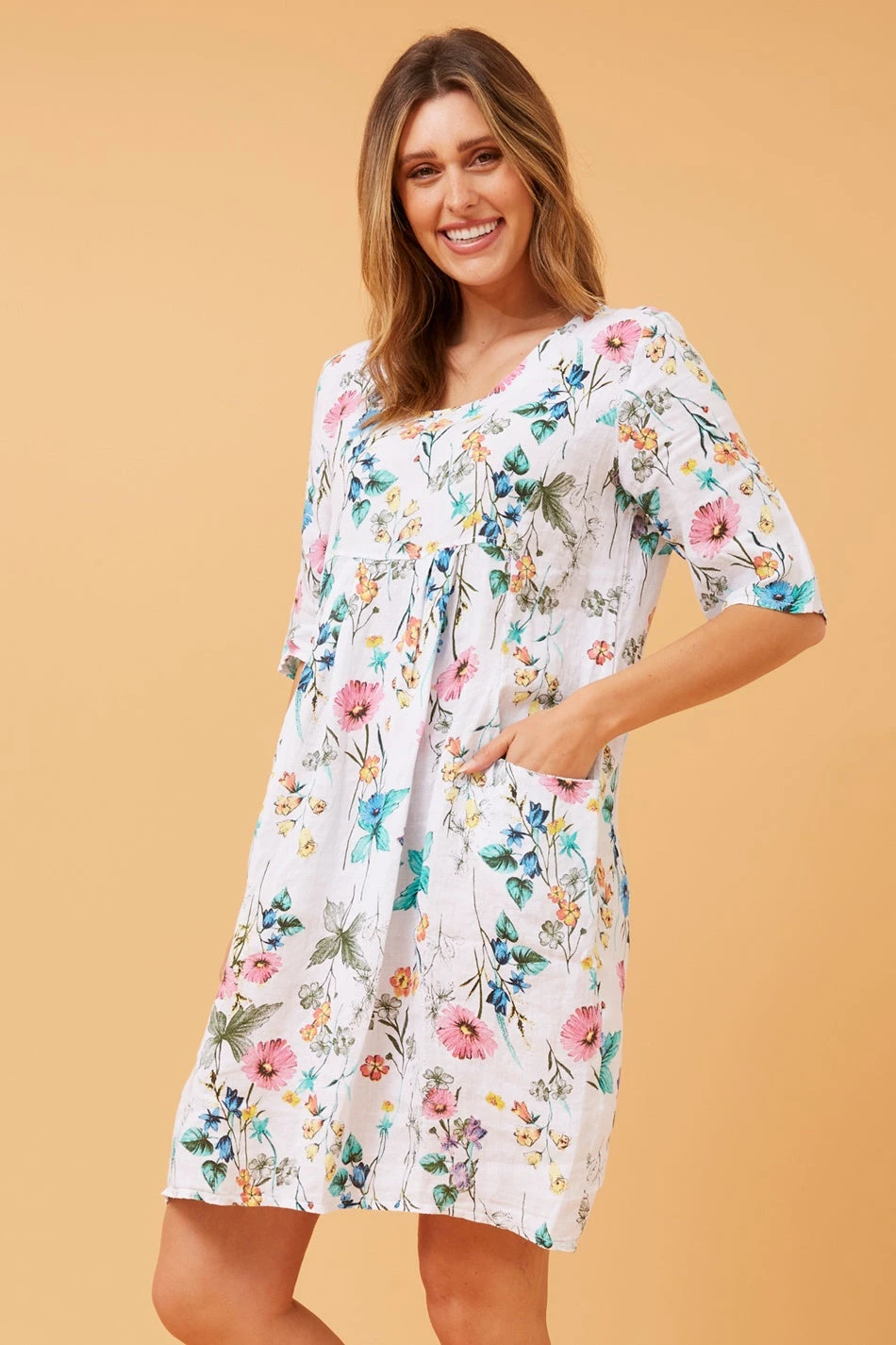 This dress features a charming floral print that adds a touch of botanical elegance. Crafted from breathable linen material, it ensures a light and airy feel, perfect for warm-weather occasions