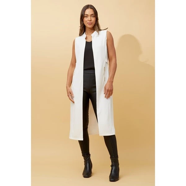 Elevate your ensemble with a touch of sophistication in this longline vest. The elongated silhouette exudes modern elegance, making it a versatile piece for both casual and dressy occasions. Pair it with tailored trousers and a crisp blouse for a polished office look, or throw it over a simple dress for a stylish evening ensemble.