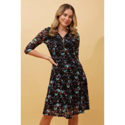 This floral lace dress is a fabulous take on the sophisticated cocktail dress. It has a fitted double layer bodice and metallic zip around the neckline creating an edgy touch. Pair with your heels and be ready for your date out!