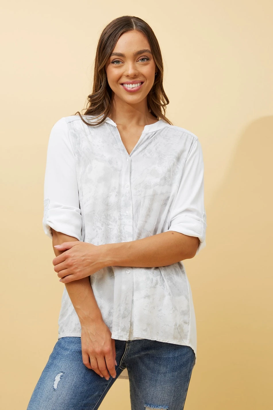 - Long roll-up sleeves