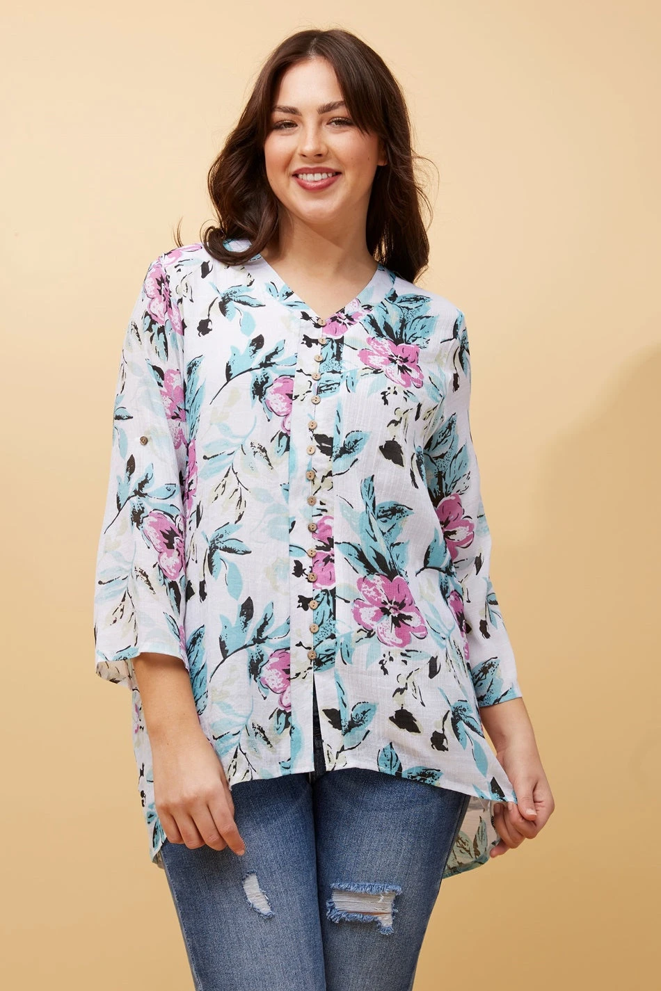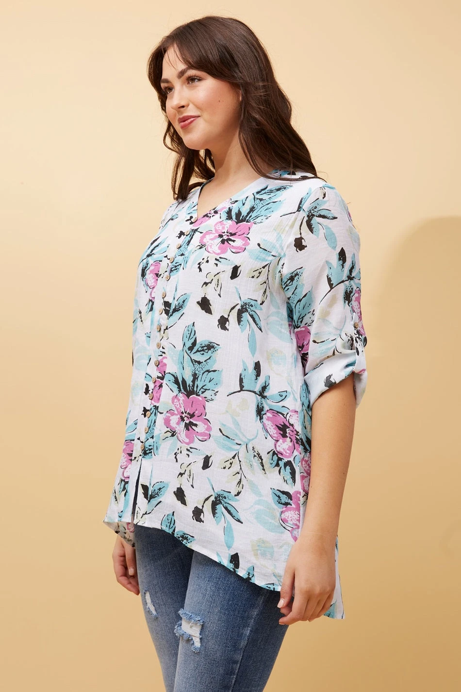 This button front top creates a feminine vibe suiting all body types and adds edge to your style. Team it with your everyday pants and heels for a chic day look!