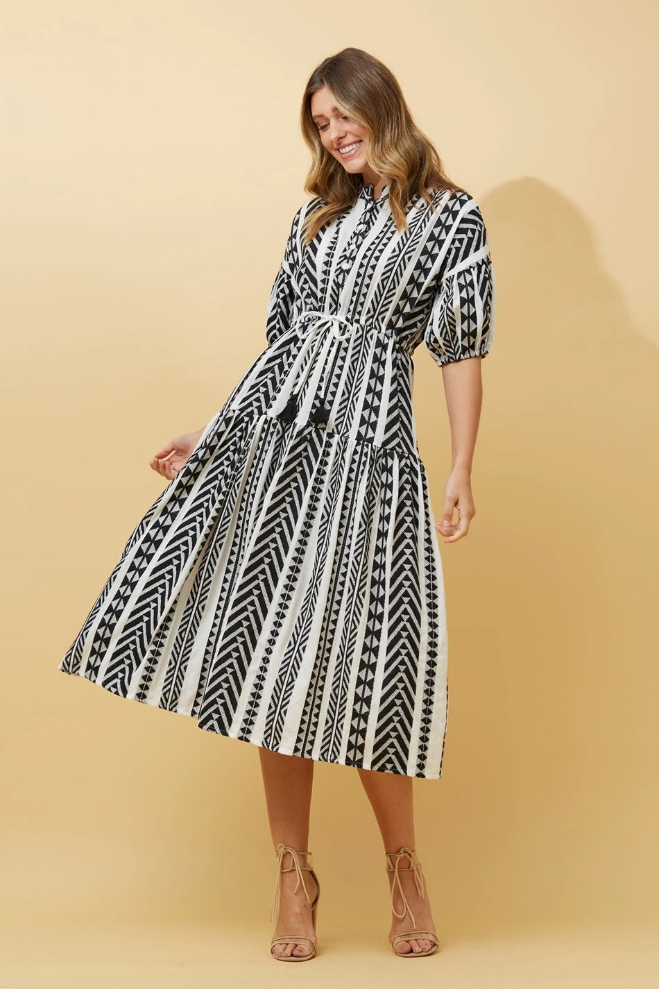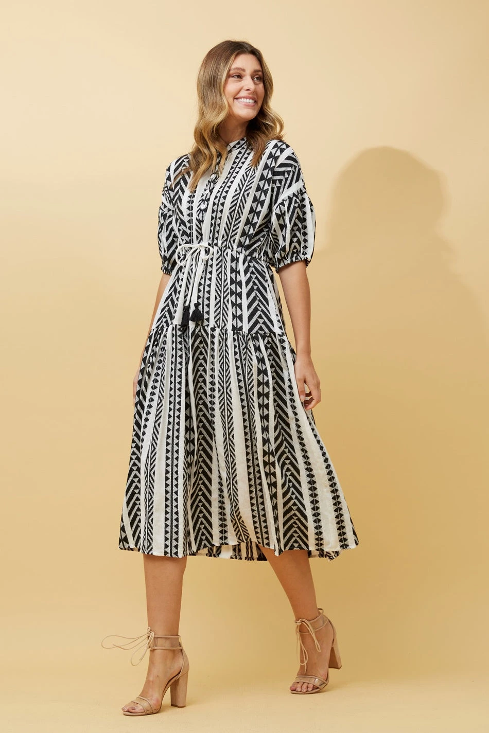 The perfect blend of fun and quirky, the Shreya Midi Dress features a gorgeous jacquard print and short puff sleeves. Match this with your favourite heels or sandals and minimalist earrings to complete the look!