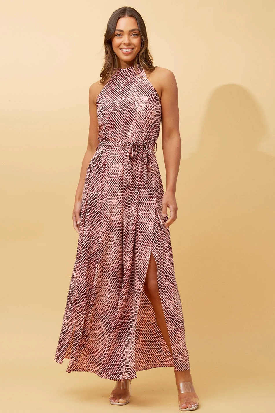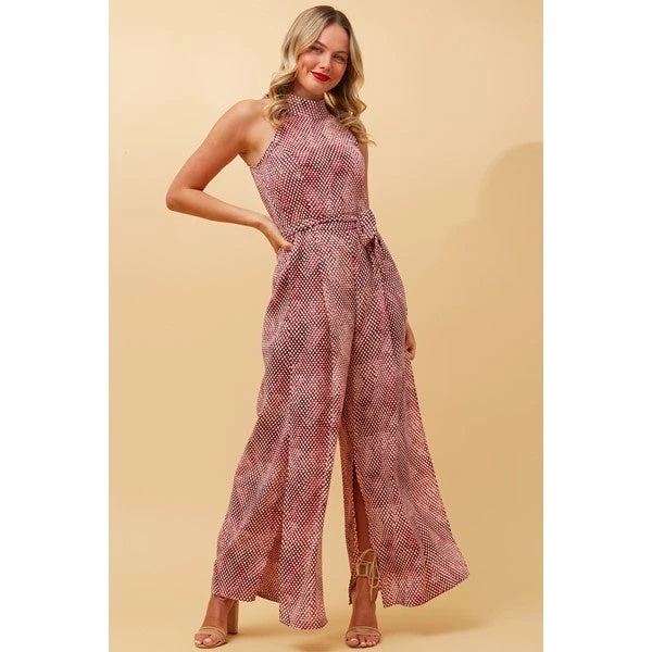 Make a statement this season with our Hilda jumpsuit. Featuring an abstract print material with ring detail and a halterneck, we’re in love. Complete the look with simple accessories and heels for an Insta-worthy vibe.