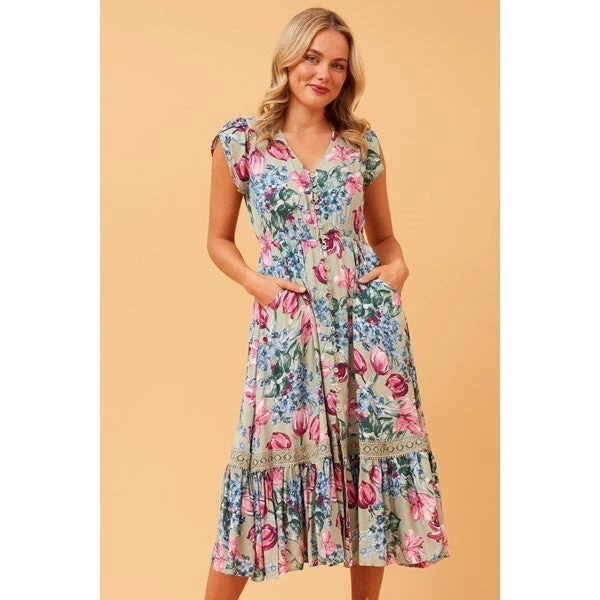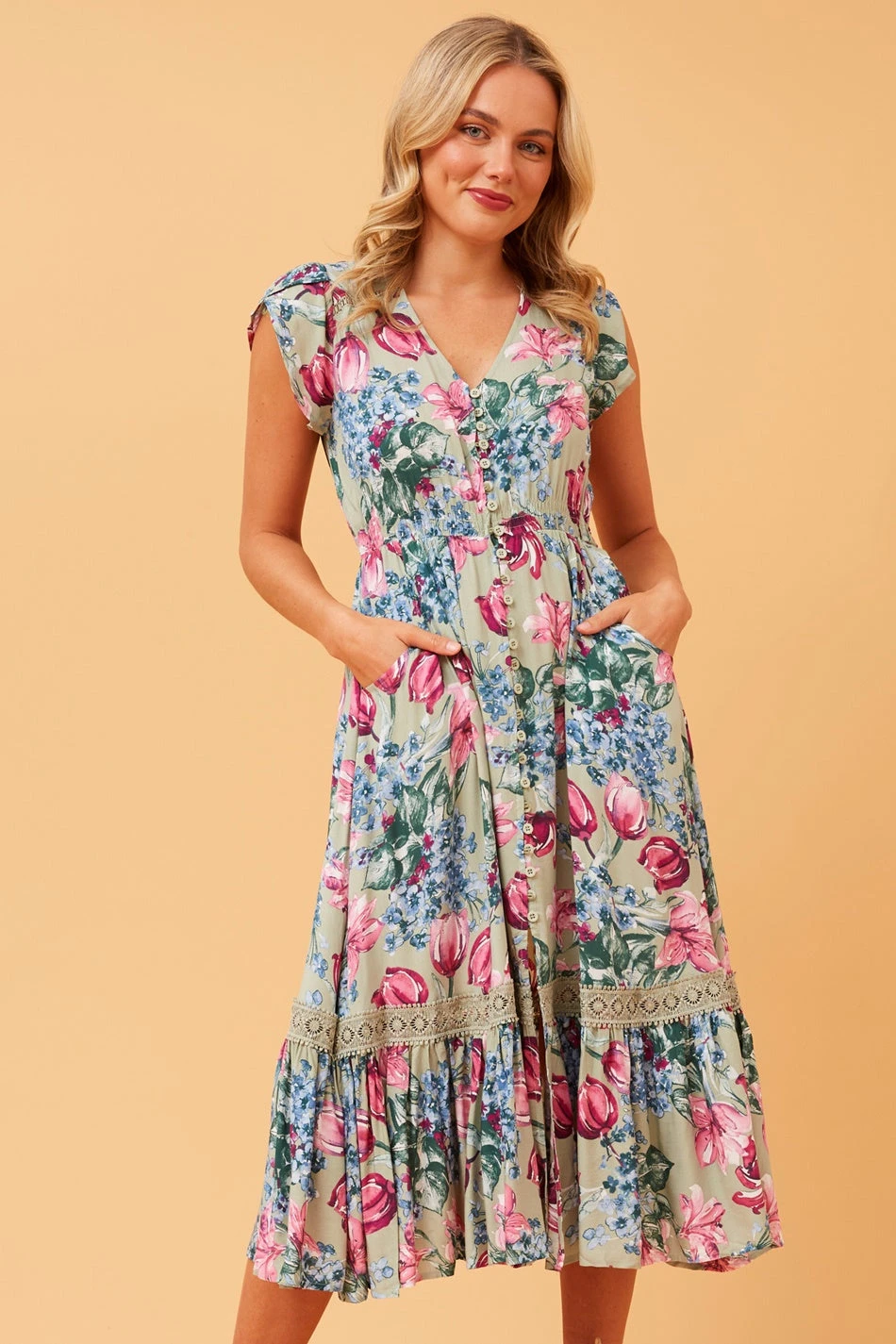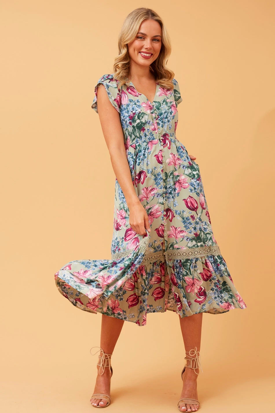 CALLING ALL BOHO BABES** This floral midi dress is a must have for your wardrobe this season. Grab a straw hat, some cute sandals and enjoy your day off!