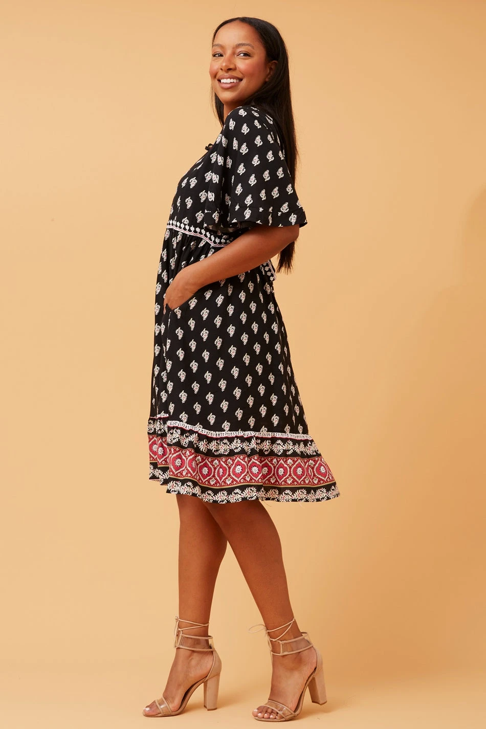 - Boho print with border print detail